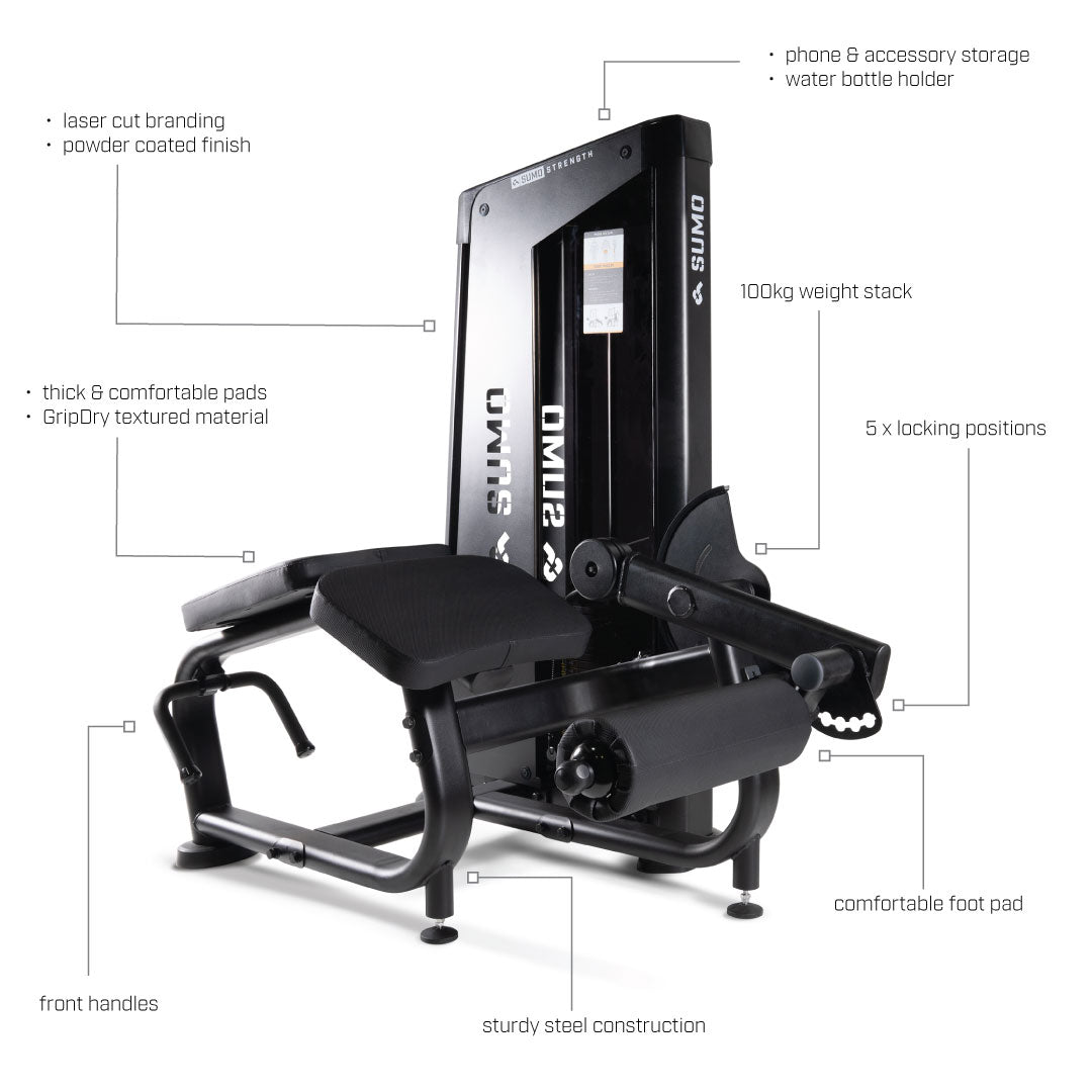 The Leg Extension features a premium powder coated finish with laser cut branding, giving a sleek all black look.