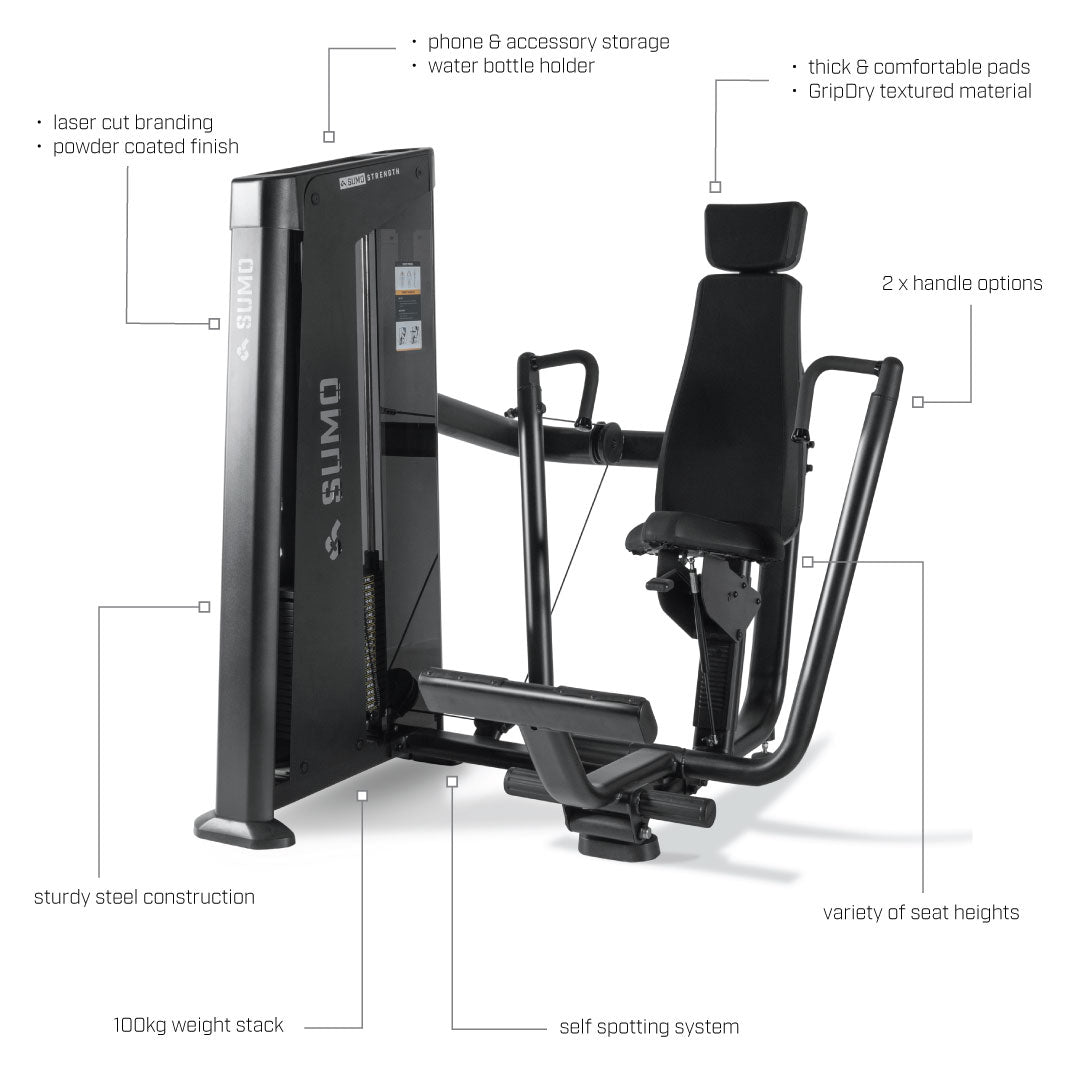 Target the muscles of the chest with ease. Experience smooth and consistent motion thanks to our precision-engineered bearings, providing a natural feel while maintaining stability throughout your lifts. With convenient pin loading, switching between weights has never been easier.