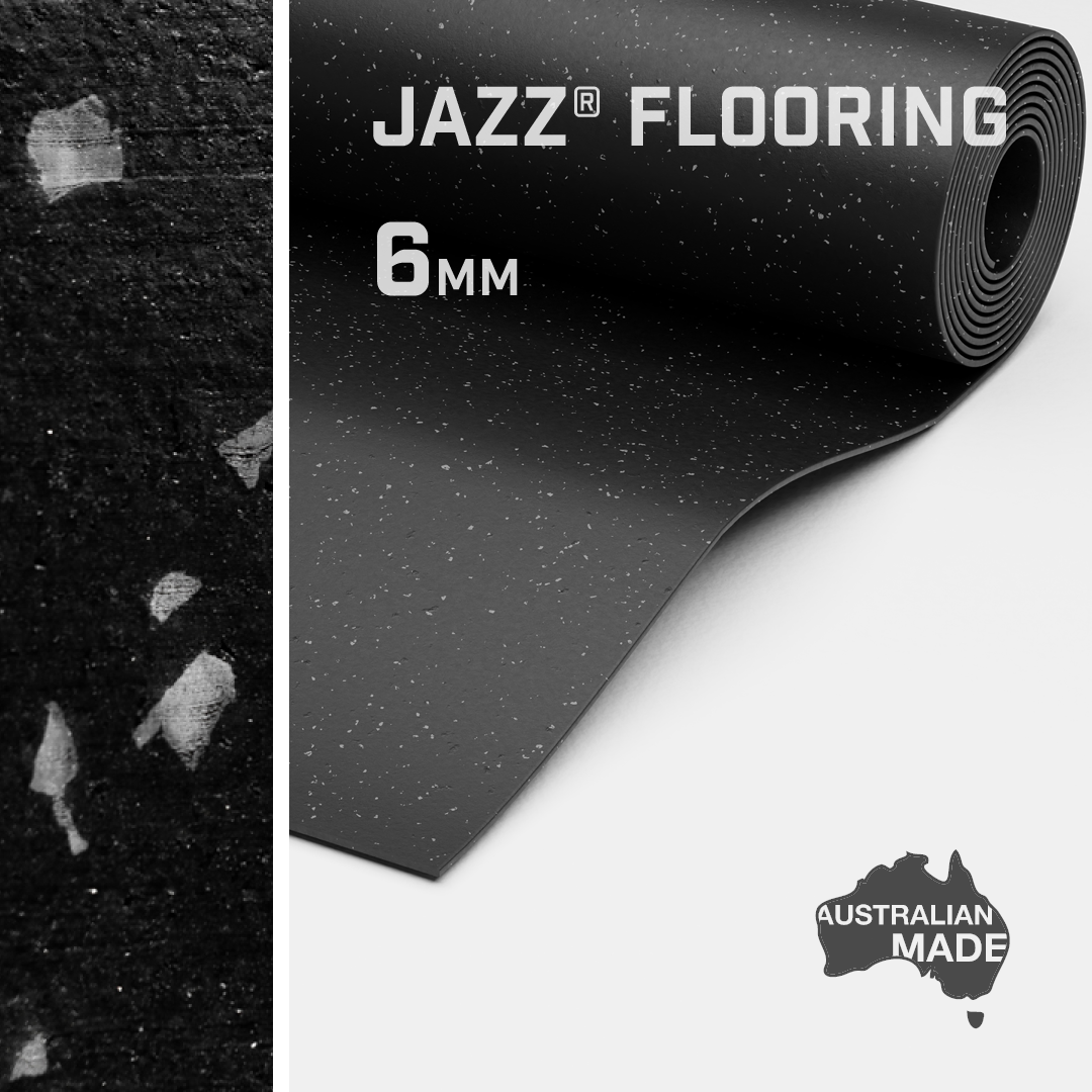 Jazz® 6mm Rubber Flooring Roll - Black/Grey - 6M Length (6.6M2)