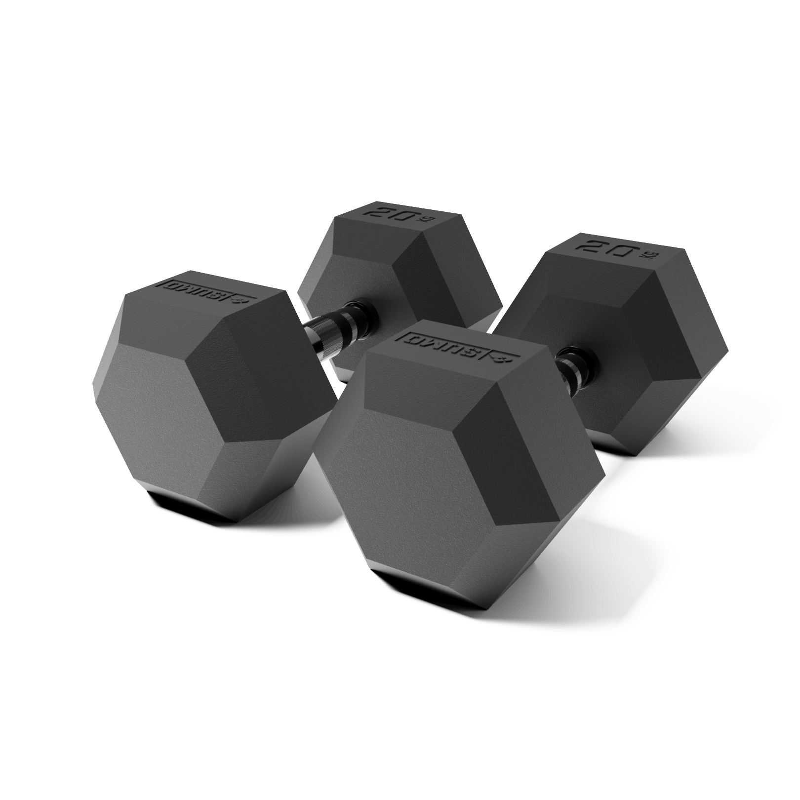 Made from extremely durable Virgin Rubber, our Black Hex Dumbbells are designed to handle whatever is thrown at them.