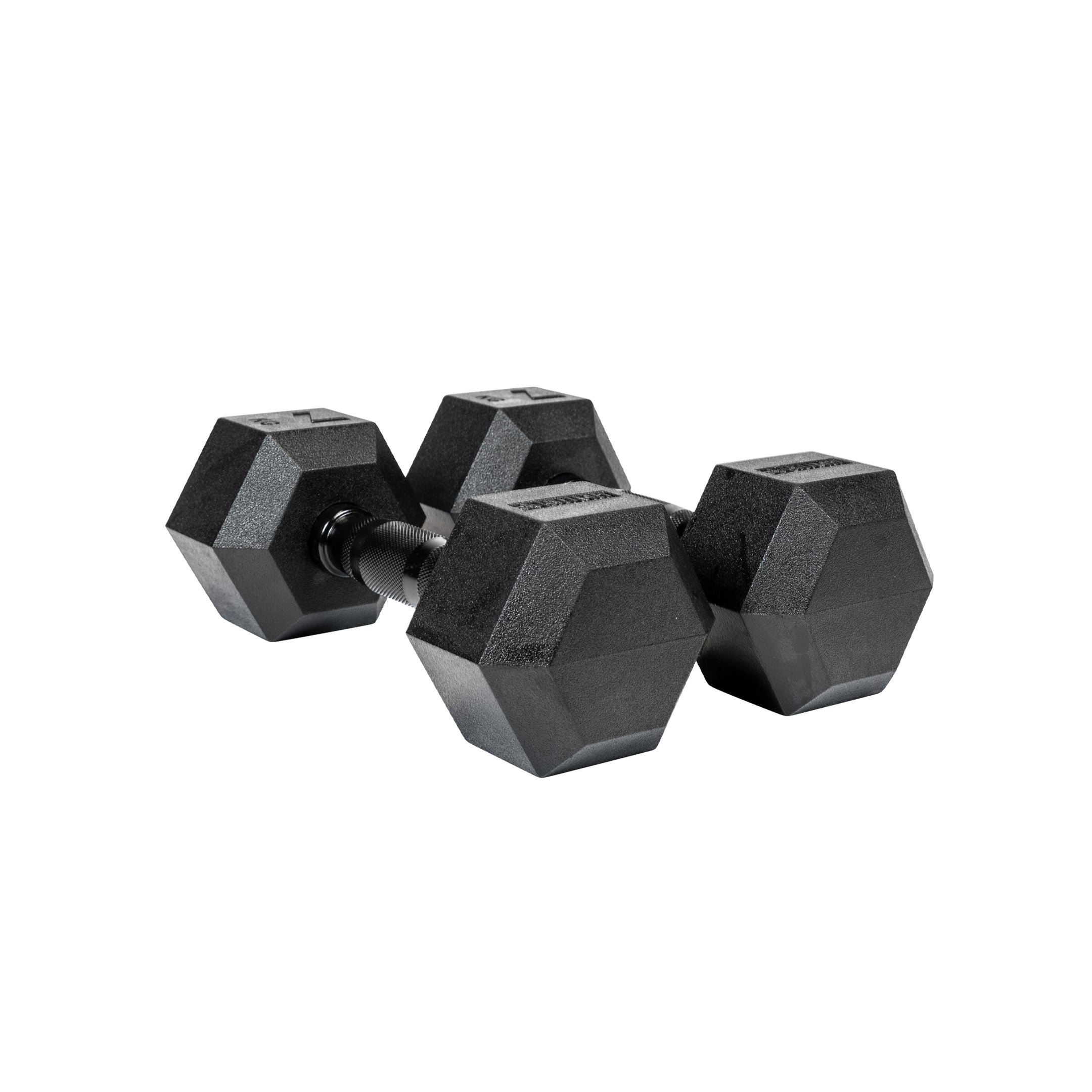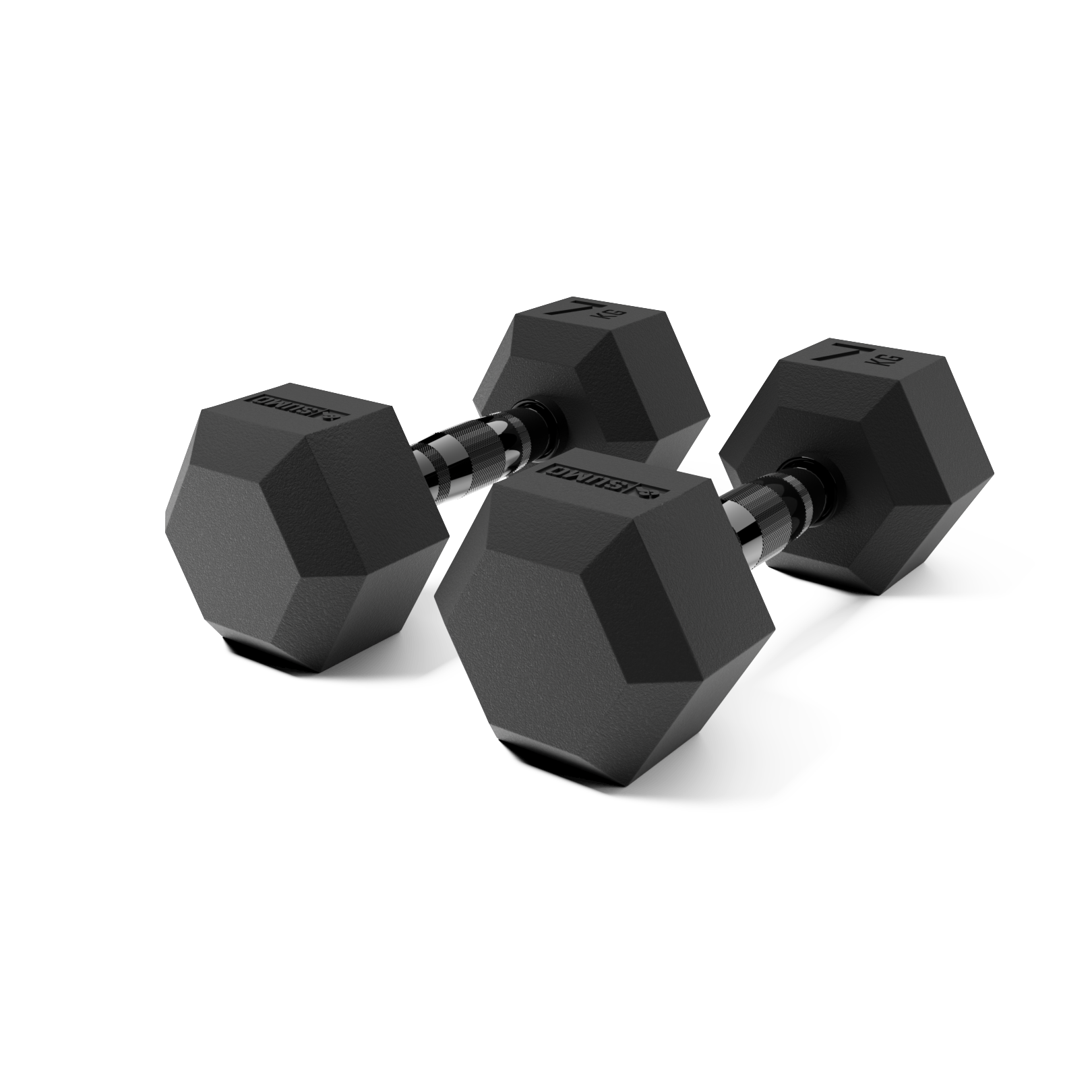 Made from extremely durable Virgin Rubber, our Black Hex Dumbbells are designed to handle whatever is thrown at them.
