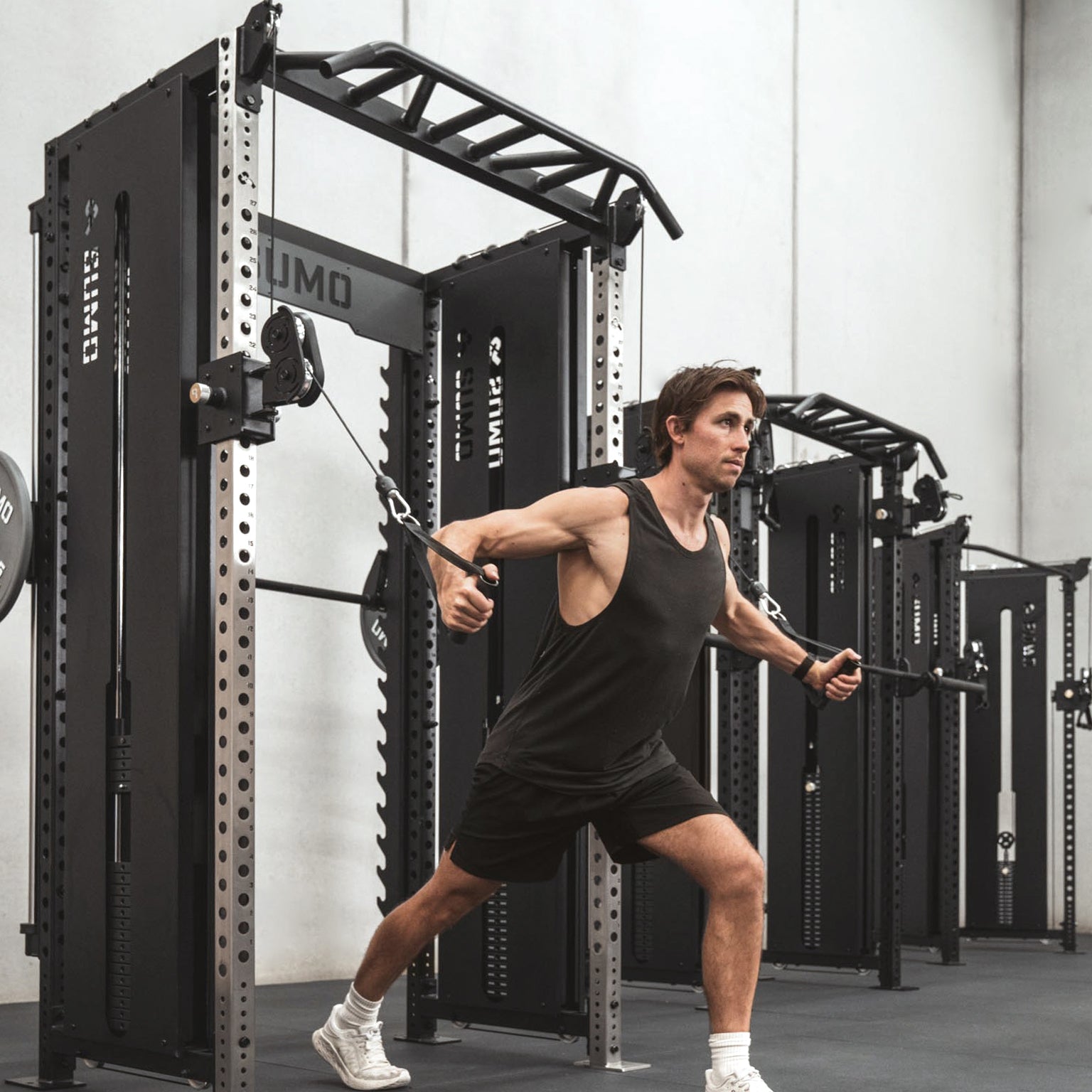 With the ever expanding range of modular attachments and rack components (including dip bar, smith machine, landmine) you can expand your exercise selection even more.