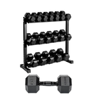 2-22.5kg Black Hex Dumbbell Set with 3 Tier Rack (10 Pair)