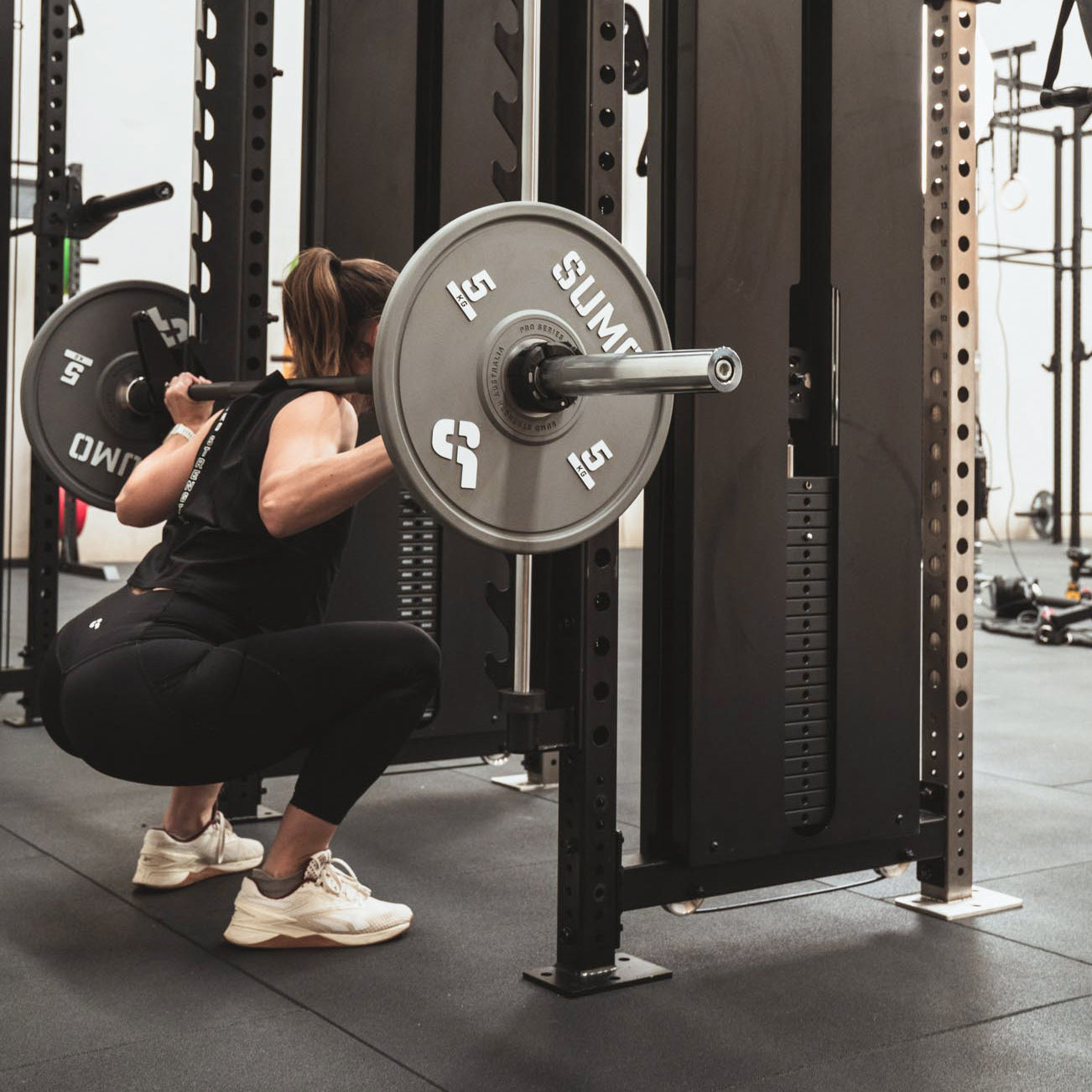 **NOTE** : When attaching the Smith Machine to the rear of your Power Rack or Functional Trainer, please ensure there’s enough room for safe and comfortable training. We recommend allowing at least 1.5-1.7 metres of clearance between the Smith Machine and any nearby wall.