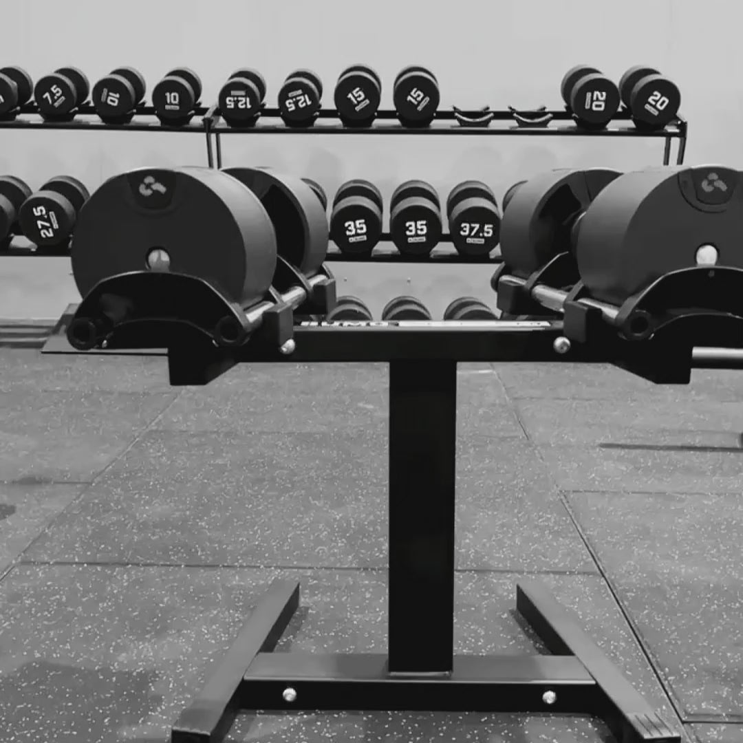 Our Adjustable dumbbells are the perfect addition to a gym with limited space. We know how precious floor space is in any home gym, so we've made sure our dumbbell stand takes up as litttle space as possible!