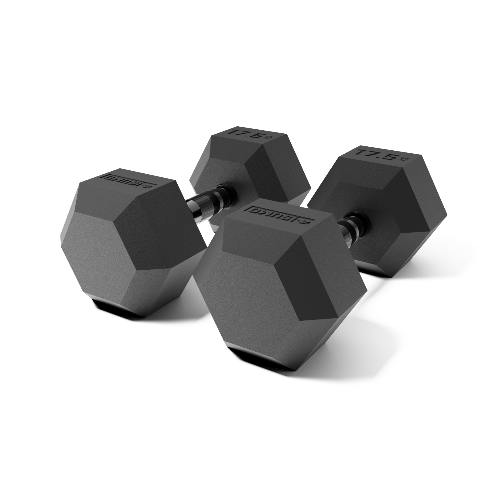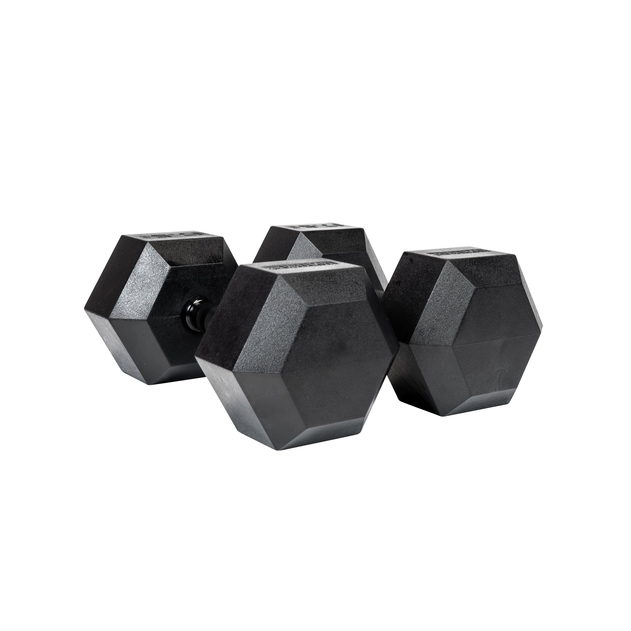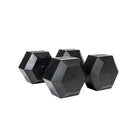 Made from extremely durable Virgin Rubber, our Black Hex Dumbbells are designed to handle whatever is thrown at them.