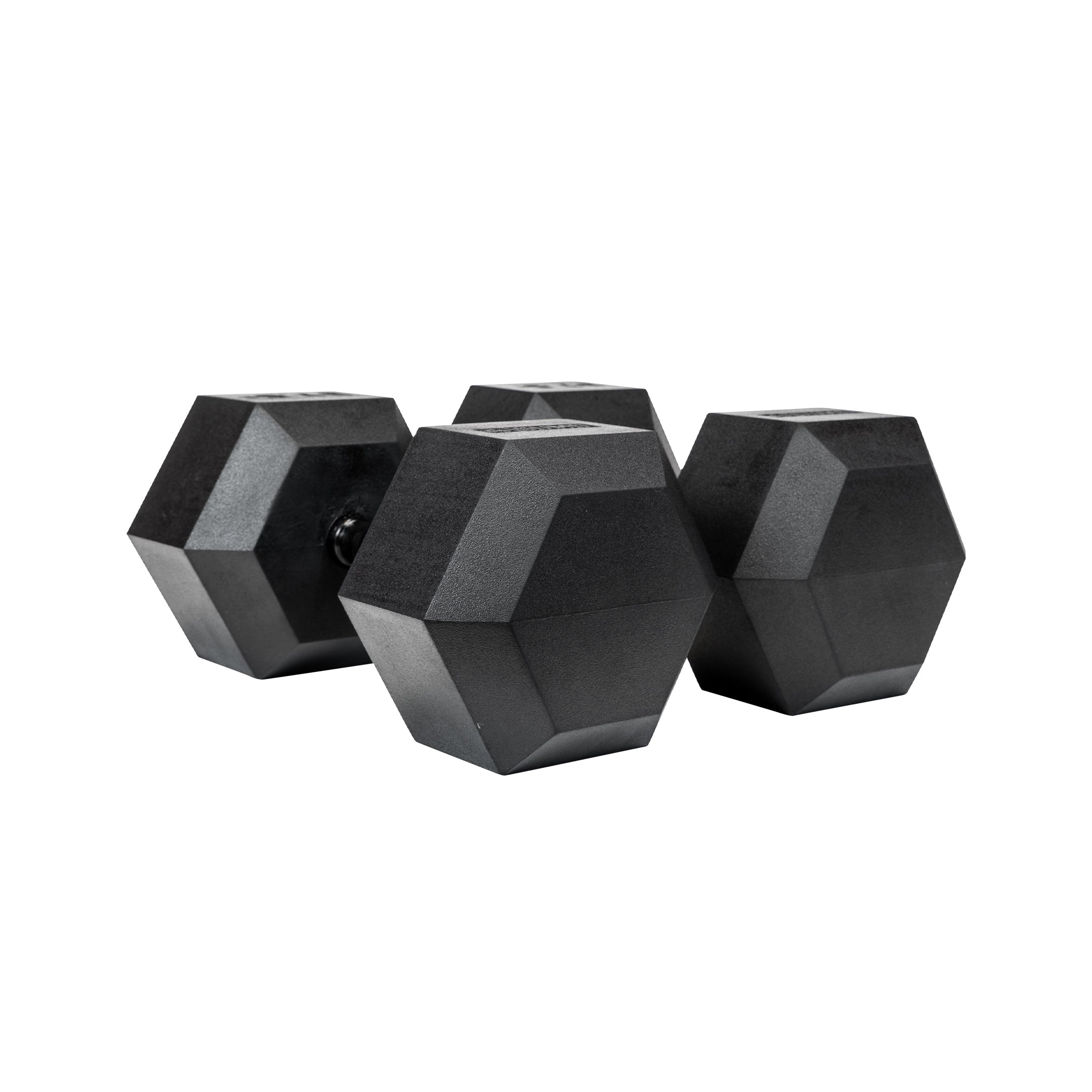 Made from extremely durable Virgin Rubber, our Black Hex Dumbbells are designed to handle whatever is thrown at them.