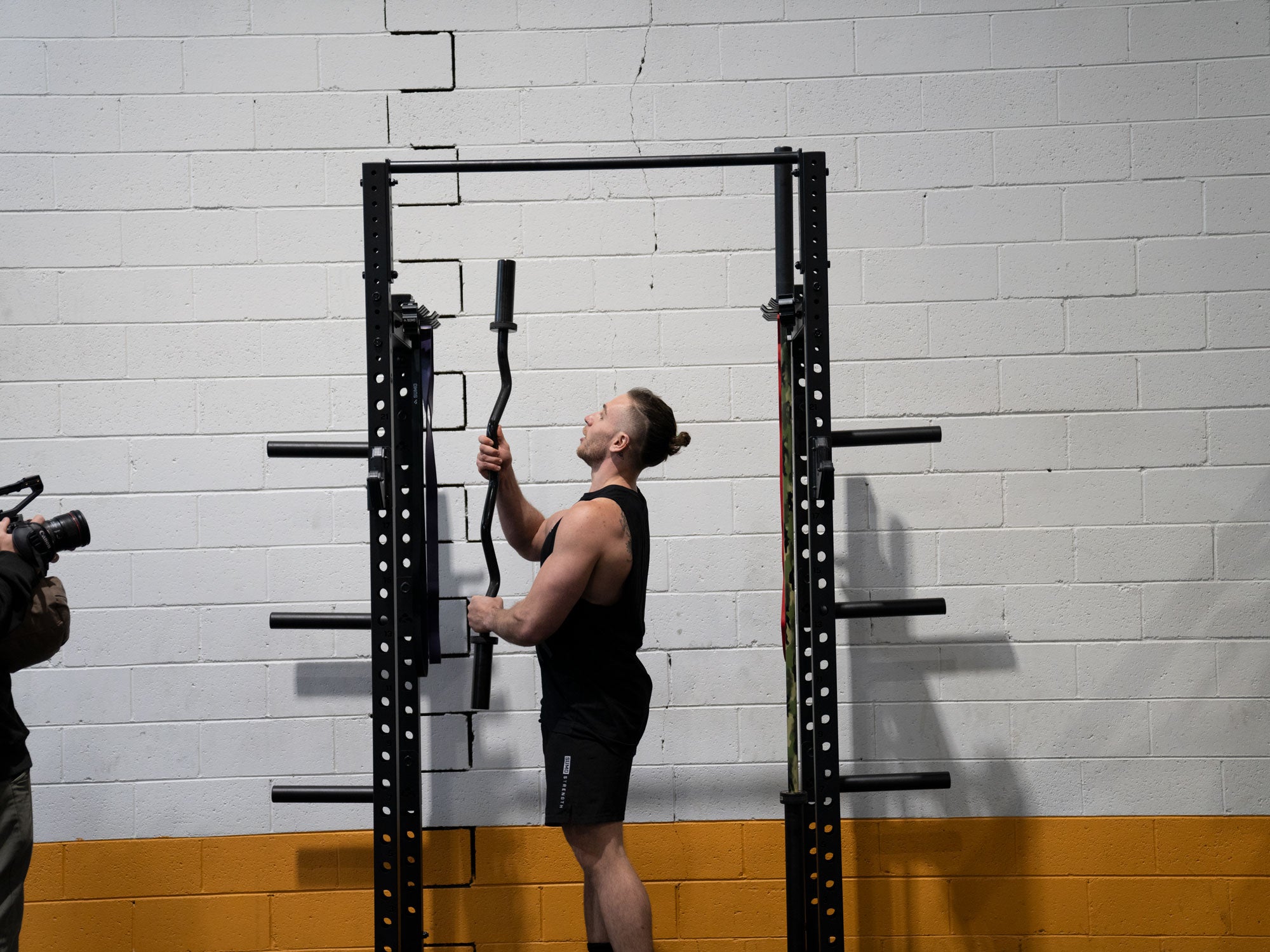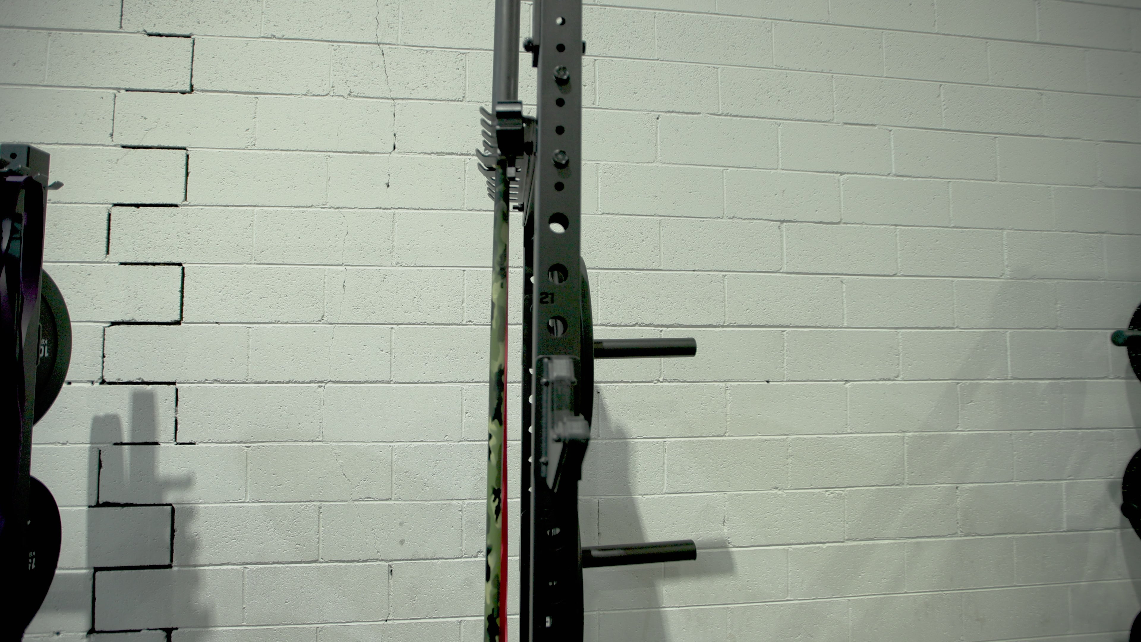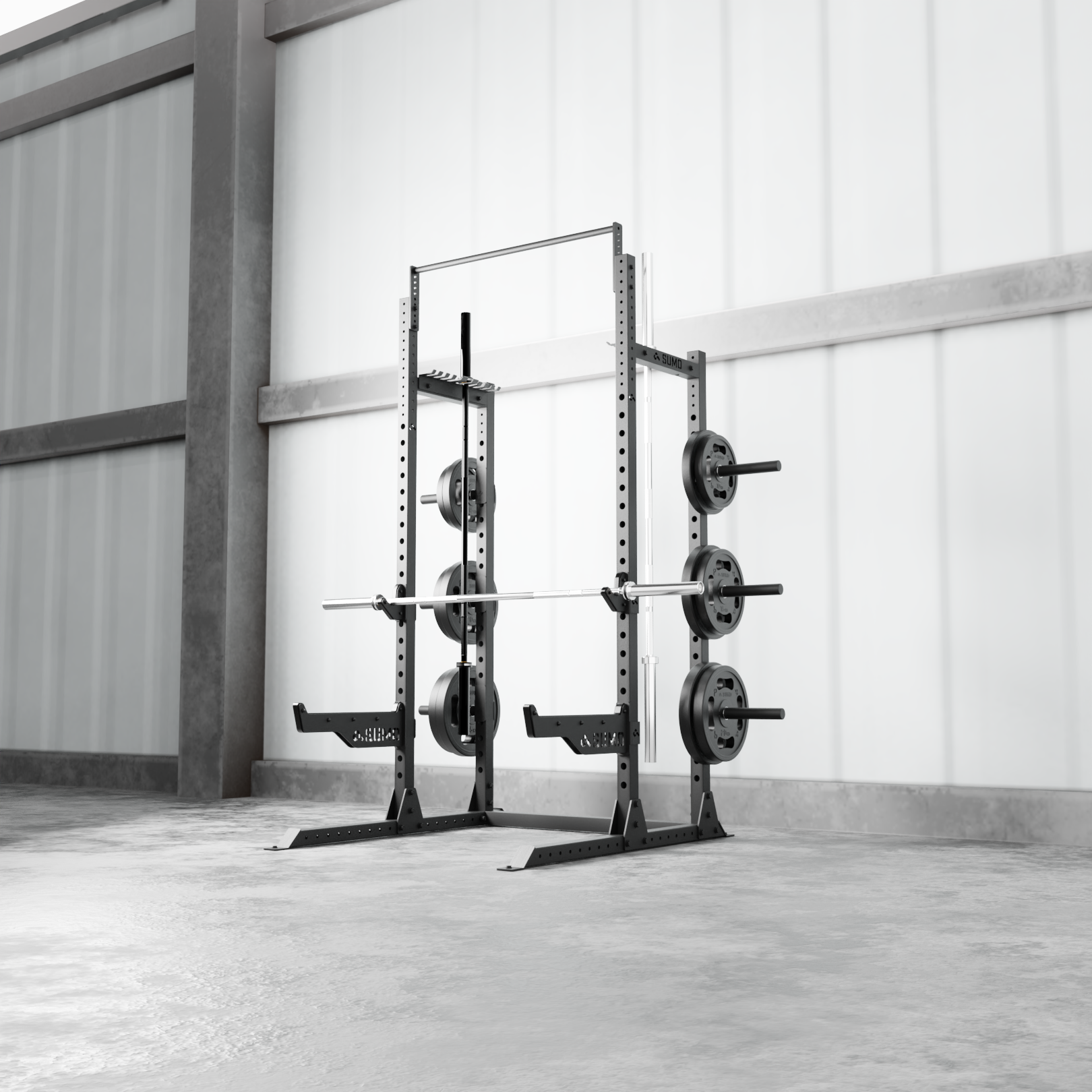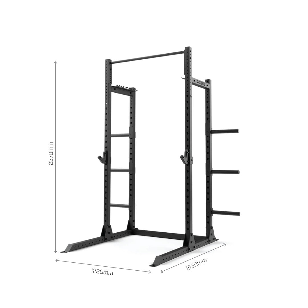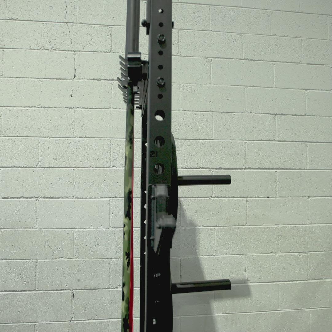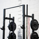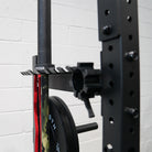 efficiently store up to two barbells and a range of bands & accessories with the 2 x inbuilt storage racks that have been built into the half rack crossbeams.